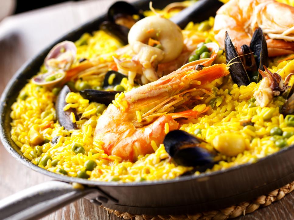 ကြက်သား၊ sausage၊ ပုဇွန်၊ ပဲ၊ အာလူးနှင့် ဆန် တို့ပါဝင်ထားတဲ့ စပိန်ရိုးရာဟင်း Paellaက Valenciaဒေသမှာ စတင်ပေါ်ပေါက်ခဲ့တဲ့ဟင်းလျာပါ။ ရွှေဝါရောင် ထမင်းကတော့ အဓိကအသက်ဖြစ်ပြီး အိမ်ချက်လက်ရာတွေကိုတော့ ဆိုင်ချက်တွေက ဘယ်တော့မှမမီခဲ့ပါဘူး။